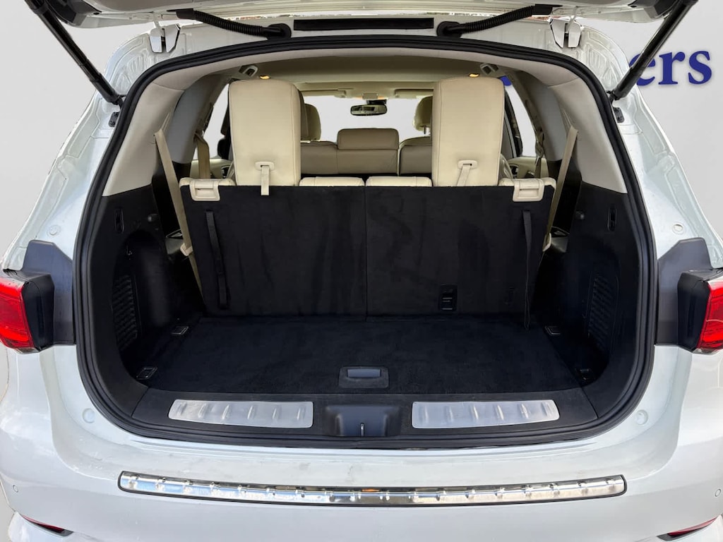 PREMIUM PLUS PACKAGE Around View Monitor w/Moving Object Detection, 2 front and 2 rear sonar system, Rain-Sensing Front Windshield Wipers, INFINITI Navigation, 8 WVGA color touch-screen, lane guidance, 3D building graphics, INFINITI InTouch services w/6 months of safety, security and convenience services, SiriusXM satellite radio w/90 days complimentary trial, SiriusXM Traffic and Travel Link w/4 year complimentary trail access to traffic, weather, fuel prices, stocks, sports, and movie times, Voice Recognition For Navigation, 1-shot voice destination entry, Illuminated Kick Plates (IKP), PREMIUM PACKAGE Entry & Exit Assist, For drivers seat and steering wheel, Roof Rails, Dual Occupant Memory System, For drivers seat, steering wheel and outside mirrors, Enhanced Intelligent Key Memory, Stores an occupant memory position, last used audio, climate control and navigation settings, Rear Bumper Protector, Remote Engine Start, Heated Steering Wheel, 2-Way Drivers Seat Power Lumbar Support, Radio: AM/FM/CD/DVD w/MP3 Playback Capability, Bose 13-speaker premium audio system, Radio Data System (RDS) and speed-sensitive volume control, Outside Mirrors w/Reverse Tilt-Down Feature.
